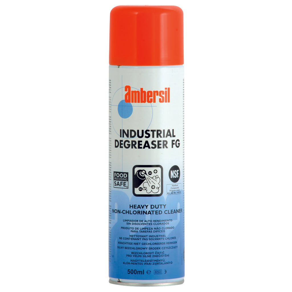 Food Grade Cleaning and Lubrication, NSF A8 and K1 Registered Heavy Duty Degreaser, Industrial Degreaser FG, 500ml Aerosol, Ambersil