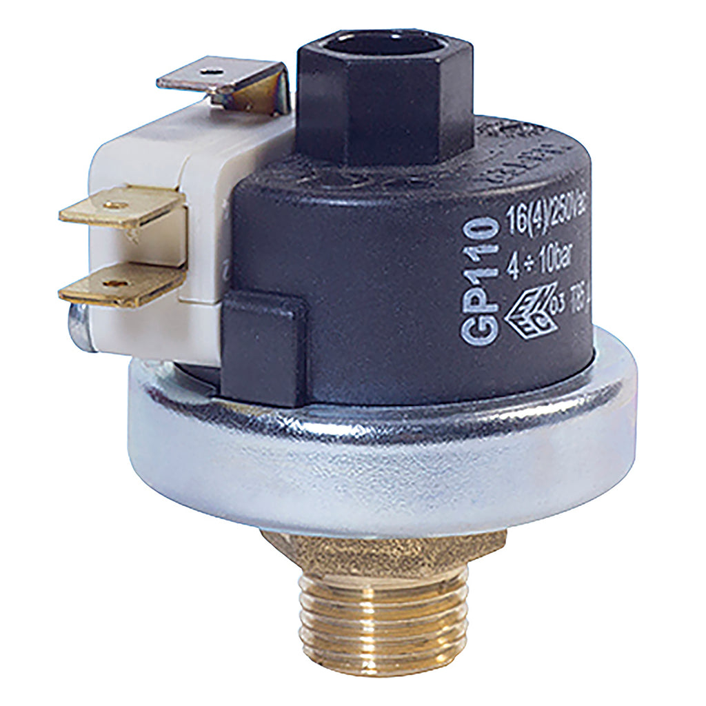 1/8" BSP Tapered Male, Direct Mount Pressure Switch, Stainless Steel, Suitable for Hot Water, Steam & Semi-aggressive Media, Stainless Steel, 10amp, Working Temperature -10°C to +125°C, Compound Gauge 4.0 to 9.0 bar, M&M
