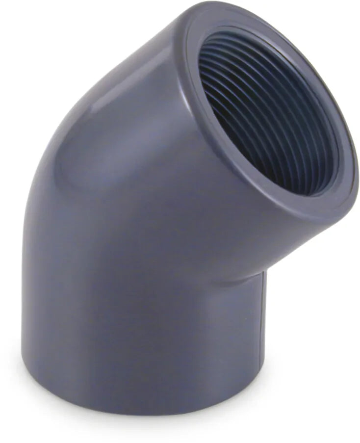 Profec 45° Pvc-U 2" Female Thread 10Bar Grey is a high-quality industrial component designed for reliable performance in pipeline and fluid transfer systems.