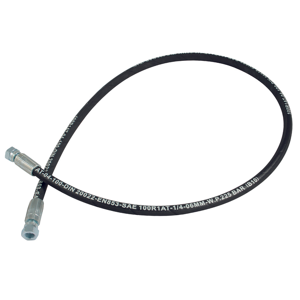 1/4" BSP Parallel Female x 1/4" BSP Parallel Female x 1/4" Outside Diameter, R1, 1 Wire Hose, Long Life Flexible Oil Line, Length 750mm, Working Temperature -40°C to +100°C, Maximum Working Pressure 3260 bar
