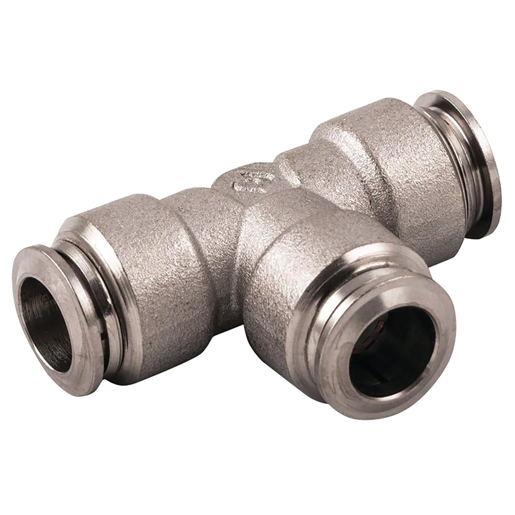 8mm Outside Diameter, Food Grade Push-in Fitting, Equal, Tee Connector, Brass Nickle Plated, Working Temperature 0°C to +200°C, Maximum Working Pressure 15 bar, Aignep