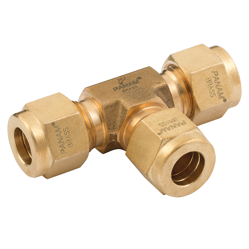 12mm Outside Diameter, Hydraulic Twin Ferrule Metric Compression Fitting, Equal Tube x Tube, Tee, Brass, Panam