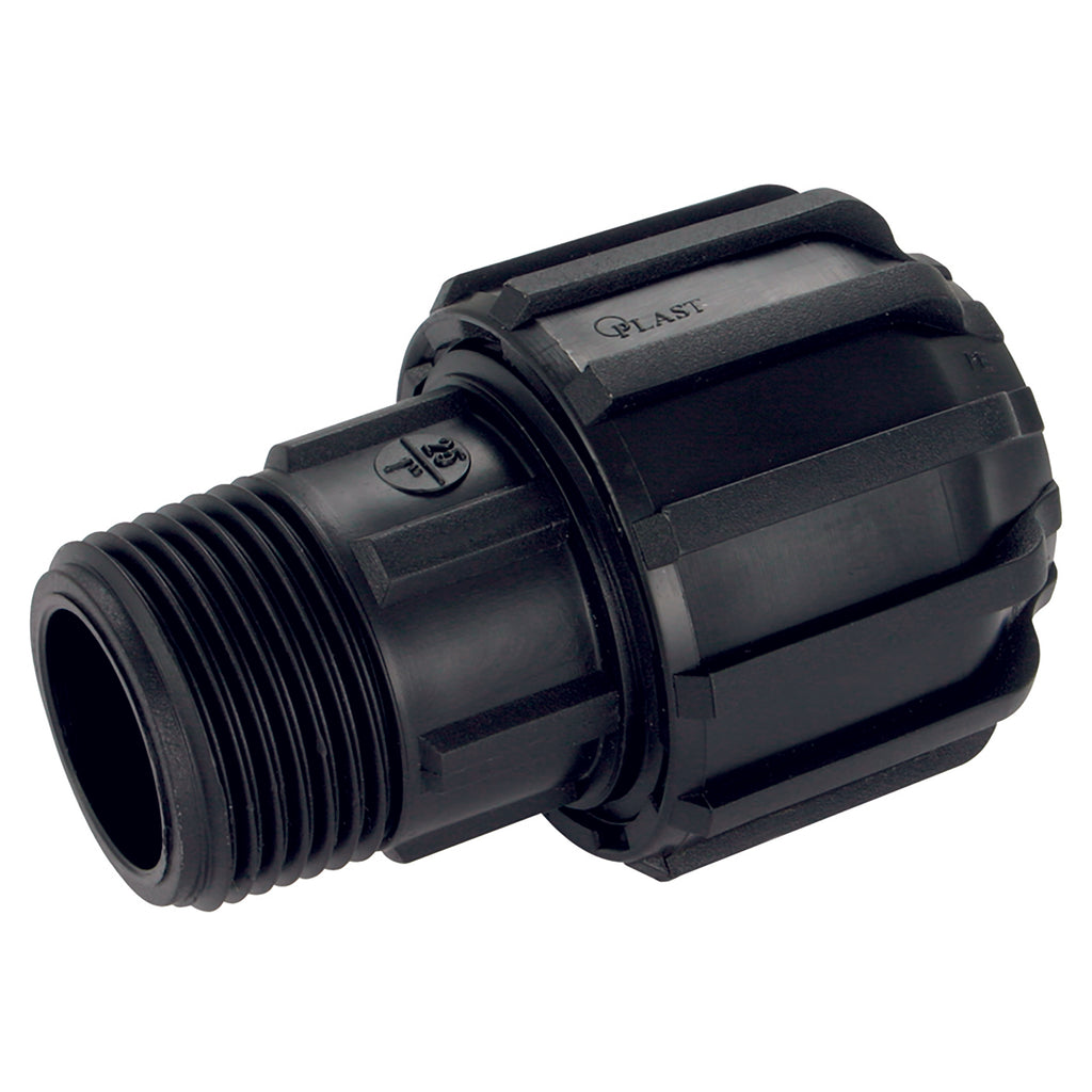 1.1/4" BSP Tapered Male x 35-50mm(1.1/2") Outside Diameter, Polyethylene Pipe Universal Transition Fitting, Stud, Polypropylene, FT Pro